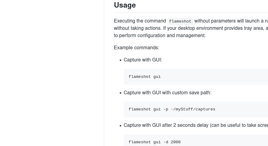 $ sudo apt install flameshotonce installed, you can start the flameshot application either command line as,