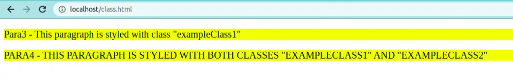 <p class="exampleClass1 exampleClass2">Para4 - This paragraph is styled with both classes "exampleClass1" and "exampleClass2"</p>